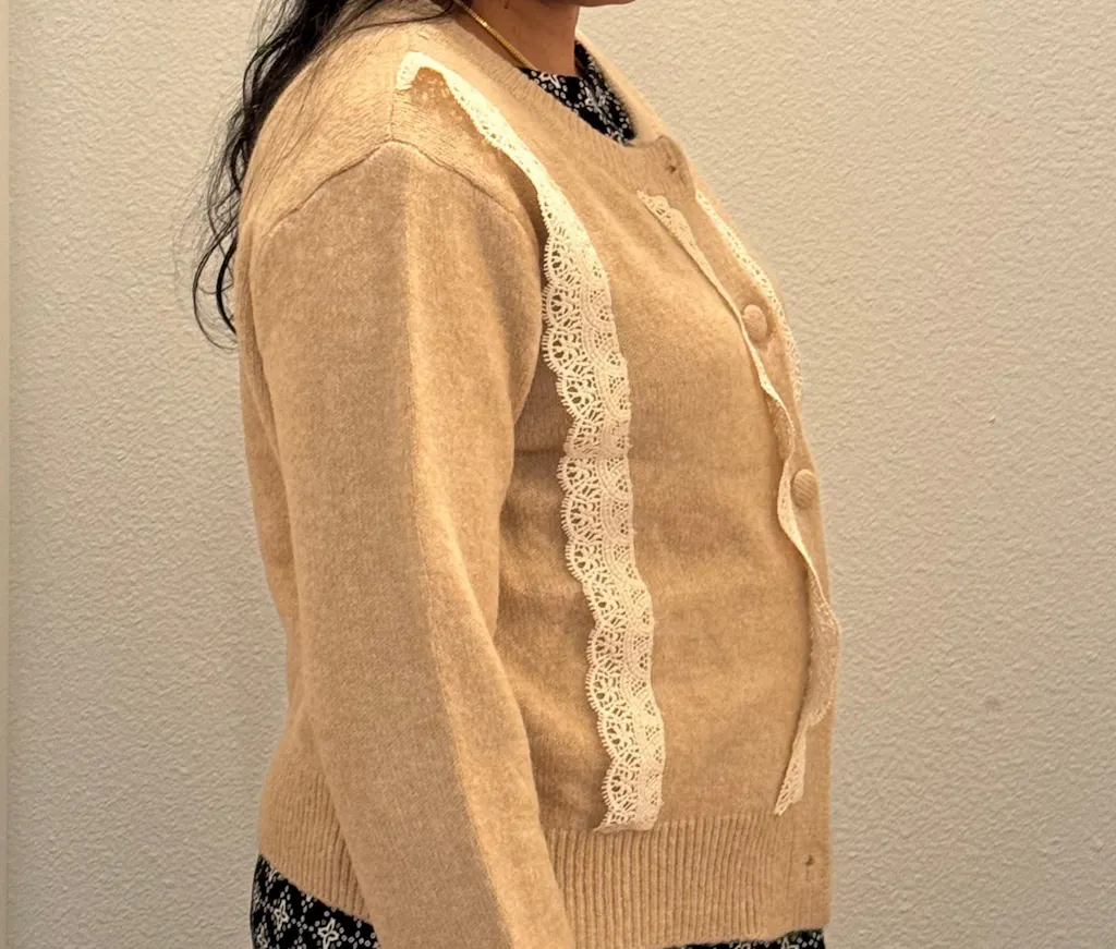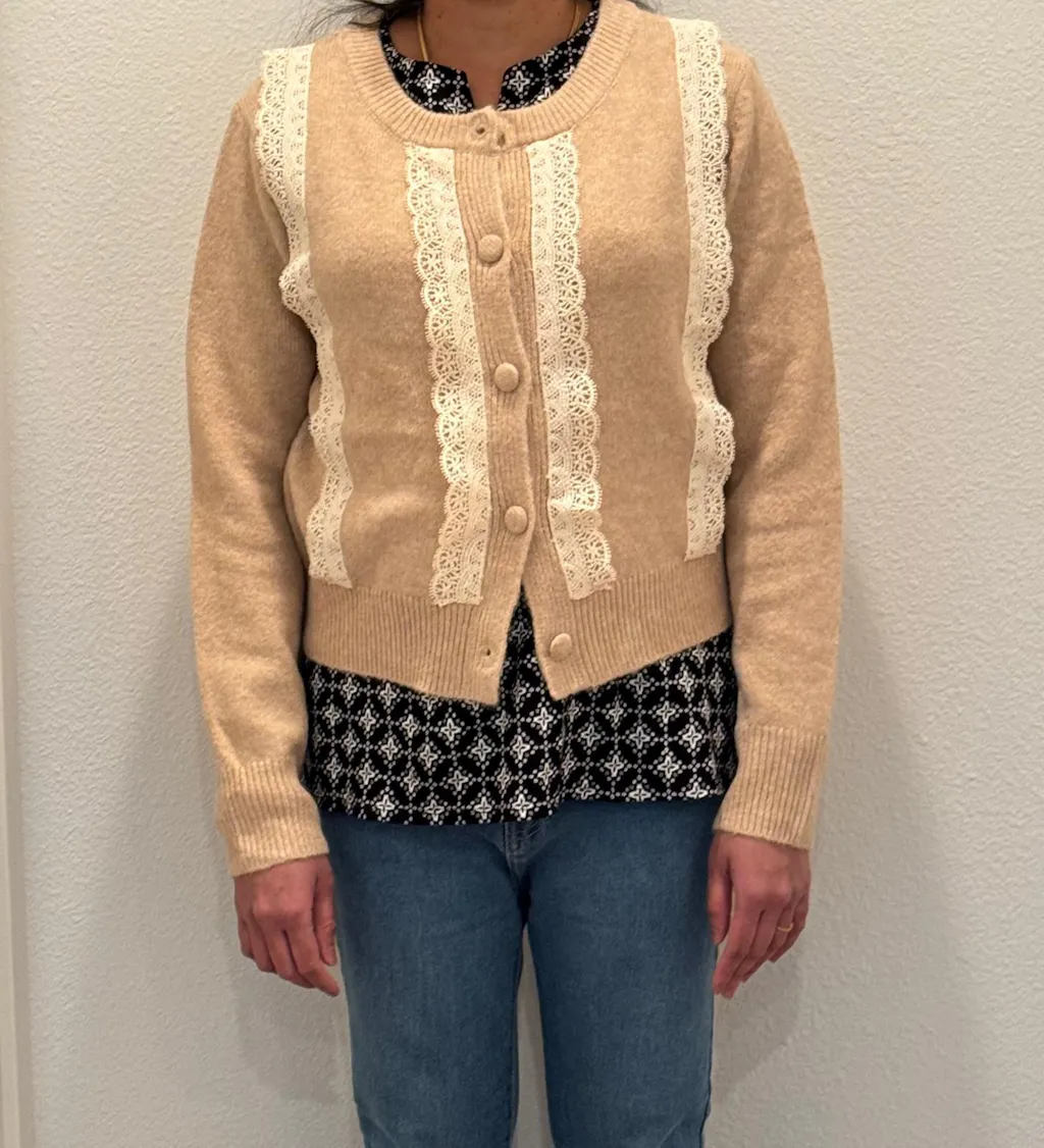 Petite Lace Trim Button Cardigan Sweater | Feminine Charm - Layering Essential | Cozy Knit Top