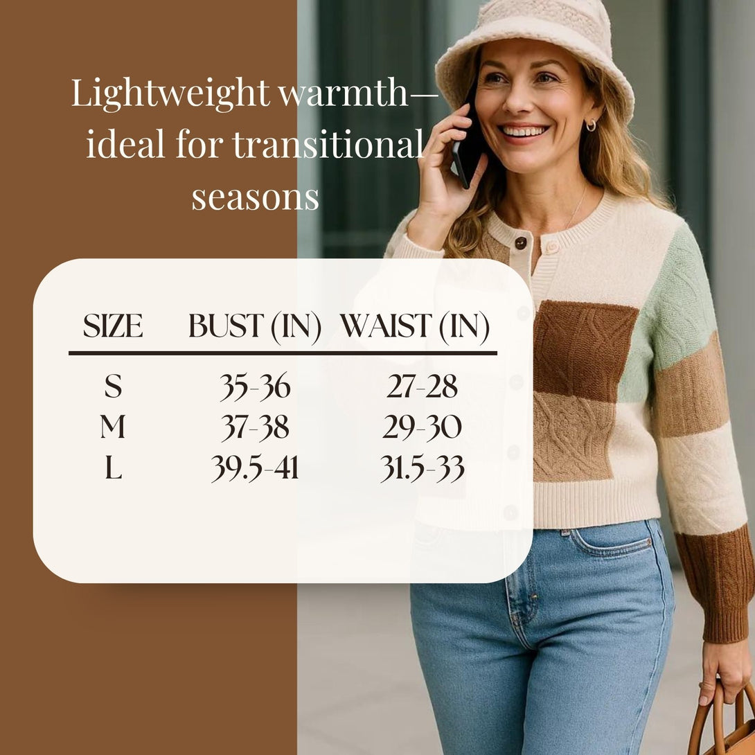 Designed with a relaxed crop length and drop shoulders, it shoulders your busy day with ease. The textured knit adds tactile interest while the bold color‑block design offers polish on Zoom without shouting. Buttoned up, it creates a clean, structured frame; open, it swings against your silhouette with modern ease.